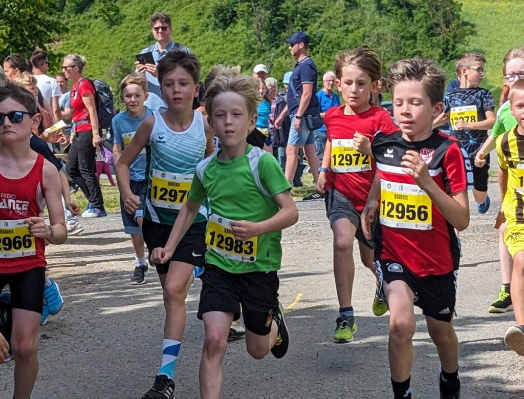 4:46 Minuten benötigte Oliver Weber für die 1 Kilometer lange Strecke um den Sportplatz, er belegte Rang 3 in der MU10. Sein Bruder Fabian wurde in der MU12 mit 5:29 Minuten Fünfter.