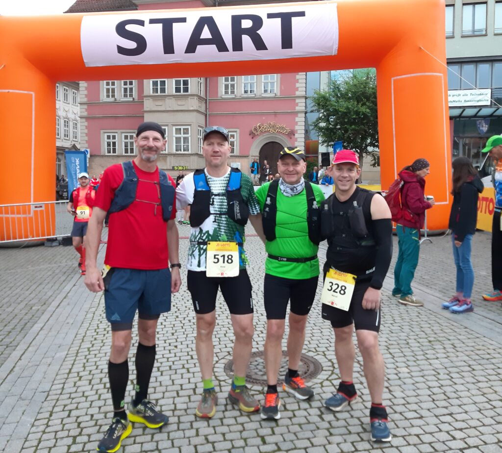 Für alle drei Starter vom TV Hessisch Lichtenau sollte es eine Prämiere werden, noch nie sind sie eine so lange Distanz in einem Wettkampf gelaufen. Gestartet wurde um 6 Uhr in der Frühe auf dem Marktplatz in Eisenach. Das Wetter war anfangs noch kühl und neblig, wurde aber im Tagesverlauf sonnig und warm. Mit über 1.800 Läufern ging es los in Richtung Hohe Sonne und weiter auf den Inselsberg mit 916 Höhenmetern. Nach dem Grenzadler in Oberhof stand noch der große Beerberg mit 983m auf dem Programm, bevor es über Schmücke zum Ziel nach Schmiedefeld ging. Nach 73,9 Kilometern und über 1.800 Höhenmetern erreichten die Läufer „das schönste Ziel der Welt in Schmiedefeld“. Mit dabei war Marcel Löber vom Laufteam Kassel, er ist Teil der Trainingsgruppe und benötigte als erfahrener Trail Läufer 8:10:57 Stunden. 9:04:40 Stunden benötigte Alfred Jilg, um in Schmiedefeld über die Ziellinie zu laufen. René Herden freute sich über eine Zeit von 9:19:13 Stunden und Markus Rühling komplettierte das Trio und überquerte die Ziellinie nach 9:44:34 Stunden.